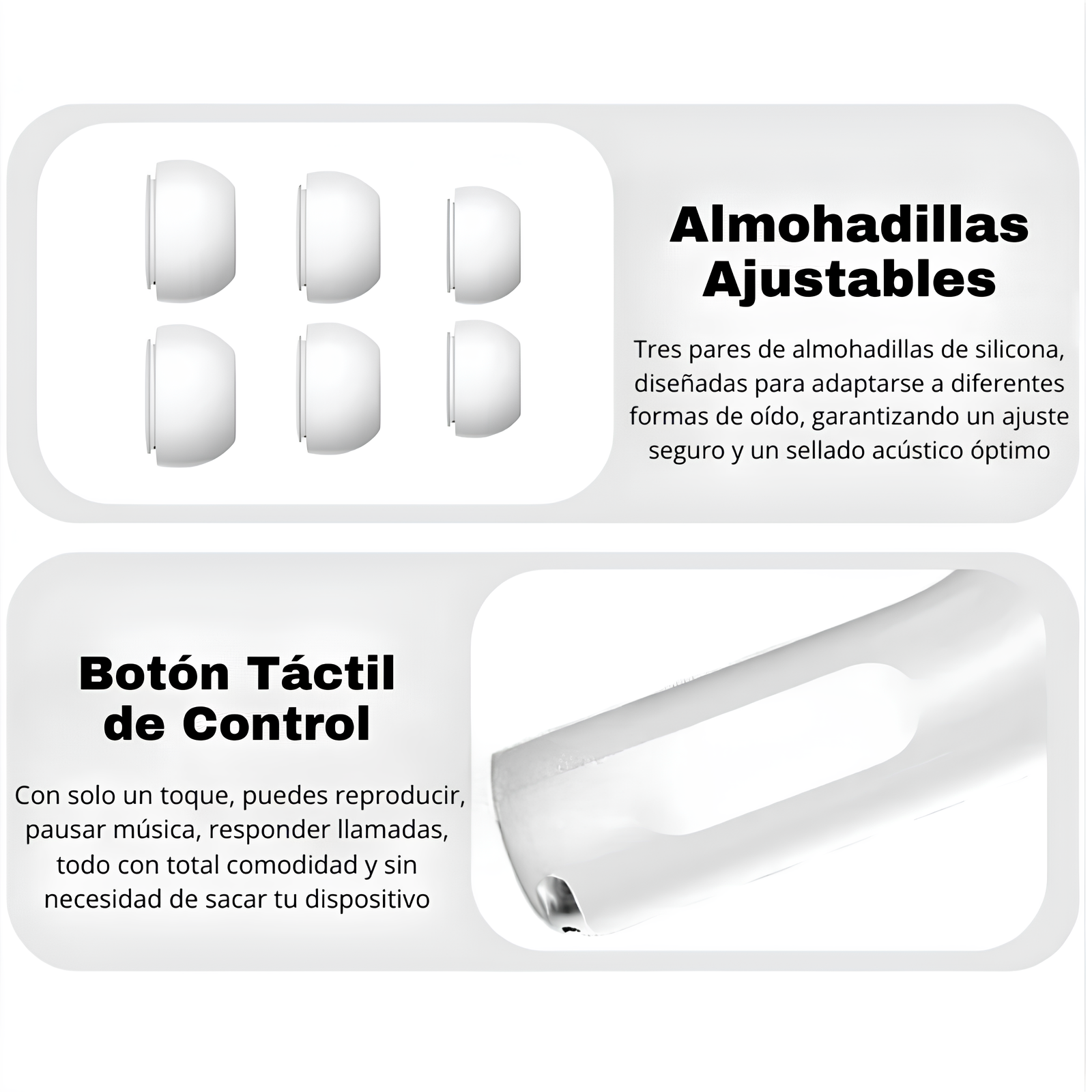 Ajuste seguro y cómodo con múltiples tamaños de almohadillas incluidas.